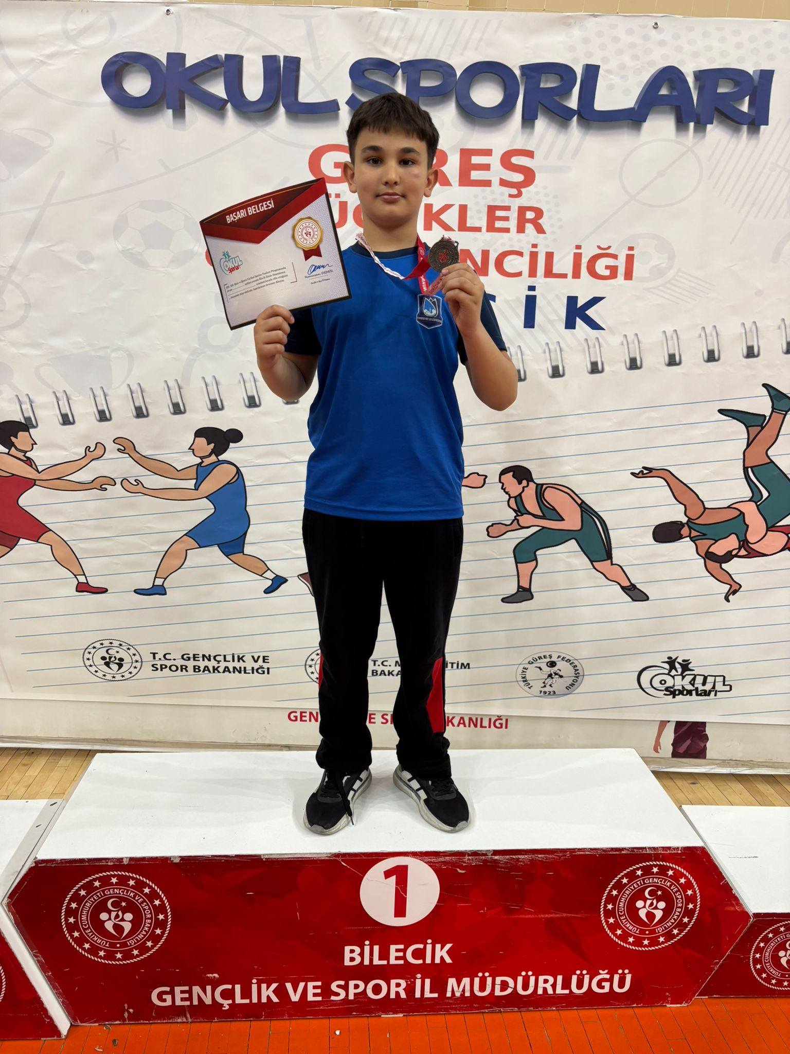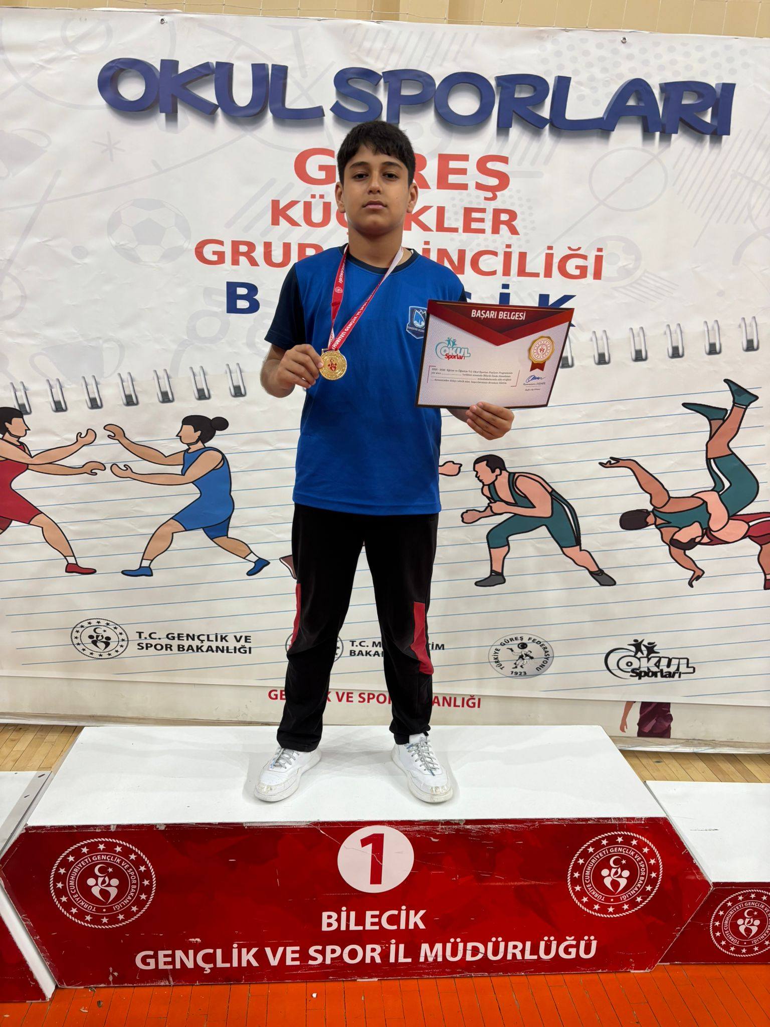 Bilecik'te düzenlenen Okul Sporları Grekoromen Güreş Küçükler Grup Müsabakaları'nda sporcularımız önemli dereceler elde etti:
