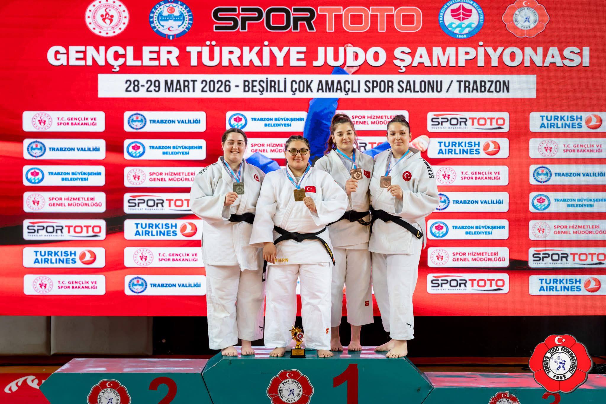 Trabzon'da düzenlenen Spor Toto Gençler Türkiye Judo Şampiyonası'nda mücadele eden Yunusemre Belediyespor'un judocuları, önemli bir başarıya imza attı. Beşirli Çok Amaçlı Spor Salonu'nda gerçekleştirilen şampiyonada Yunusemreli judocular, elde ettikleri derecelerle Manisa'yı gururlandırdı. Kadınlar 48 kiloda mücadele eden Merve Kaya ile +78 kiloda tatamiye çıkan Irmak Ceylin Güçtekin, bronz madalya kazanarak kürsüye çıkma başarısı gösterdi. Başarılı sporcular, bu dereceleriyle milli takıma seçilme hakkı da elde etti.
