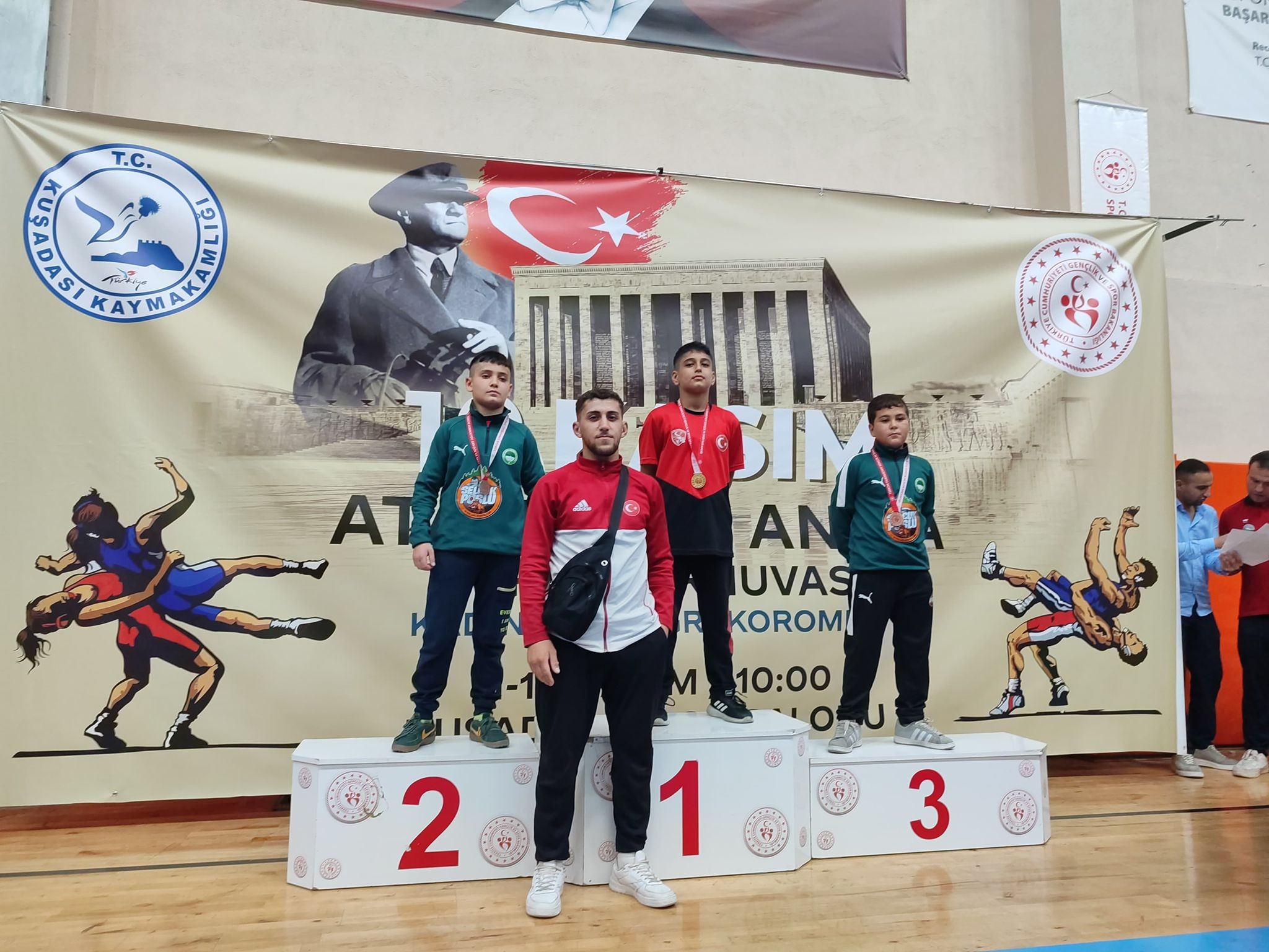 Yunusemre Belediyesporumuzun güreşçileri, 11-12 Kasım tarihlerinde Aydın'ın Kuşadası ilçesinde düzenlenen 10 Kasım Atatürk'ü Anma İllerarası Grekoromen Güreş Turnuvası'nda Manisa'nın gururu oldu. Müsabakalarda fırtına gibi esen sporcularımız, U9 yaşta takım halinde şampiyon olurken, U10 ve U11 yaşta ikinci, U13 yaşta ise üçüncü olmayı başardı. Ekibimiz bireyselde ise 7 altın, 8 gümüş, 7 bronz olmak üzere toplamda 22 madalyaya imza atarak kürsüye ambargo koydu.