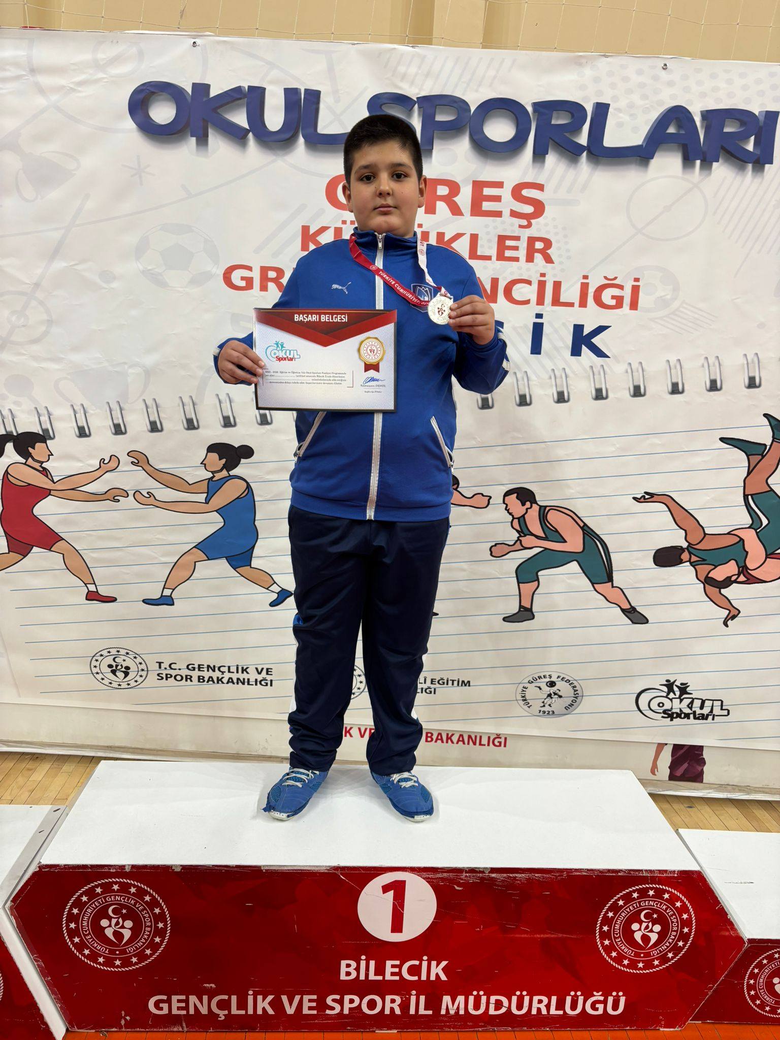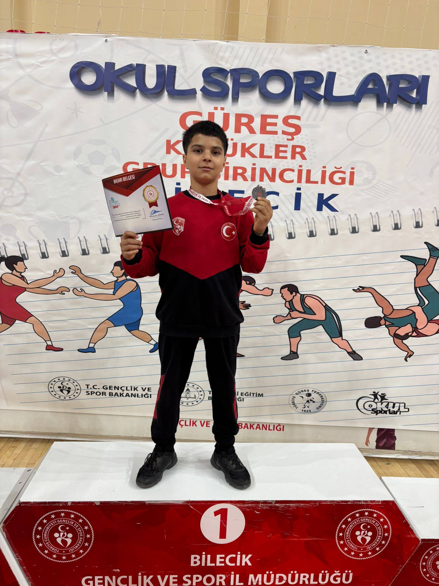 Bilecik'te düzenlenen Okul Sporları Grekoromen Güreş Küçükler Grup Müsabakaları'nda sporcularımız önemli dereceler elde etti: